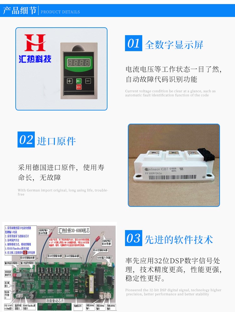 1、為了保證電磁加熱控制器產(chǎn)品的高可靠性和先進(jìn)性,系統(tǒng)的選材均選用國(guó)內(nèi)優(yōu)質(zhì)名牌產(chǎn)品。